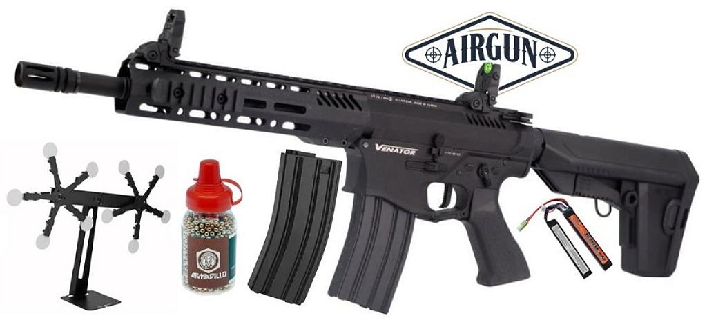 NOVA Arma de Ar Elétrica Venator MKI AEG – Não é sempre que encontramos algo totalmente novo em nosso esporte. Essas excelentes armas de ar táticas são movidas a eletricidade, substituindo a necessidade de armar o cano quebrado ou a complicada tarefa de encher tanques PCP. Basta carregar a bateria lipo em casa e você estará pronto para começar a disparar. Essas armas de ar comprimido recreativas e divertidas NÃO são para controle de pragas ou caça - apenas muita diversão!