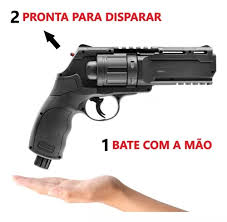 com exclusividade pela Combat. Um Revolver HDP no calibre .50 é um equipamento RAM (que não é airgun nem airsoft), ela é muito utilizada para treinamento ou defesa pessoal como arma não letal (LTL). O grande calibre .50 com uma enorme energia na boca do cano e uma aparência imponente é realmente impressionante. Possui trava de segurança automática, magazine rotativo (tambor) para 6 munições .50. Seu Funcionamento ocorre com um cilindro de CO2 de 12g e pode ser guardada pronta para uso.O TR50 é um revólver com pontos forte visíveis, alem de sua aparencia e potencia que gera um grande energia em seus disparos, ele possui superfícies texturizadas da armação e empunhadura proporcionam uma pegada segura. Possui trava de segurança automática que evita disparos acidentais caso você deixe cair o revólver. Possui magazine rotativo (tambor) para 6 munições .50.Funciona com um cilindro de CO2 de 12g e pode ser guardada pronta para uso.Para utilizar, basta um leve golpe na parte inferior do punho, que irá perfurar o cilindro de CO2 somente na hora do uso. O indicador de pressão óptico e tátil mostrará que você está pronto para disparar.Descritivo Técnico:Fabricante: Umarex;Origem: AlemanhaModelo: HDP50 T4E;Calibre: .50;Acionamento: CO2 de 12g;- Pode ser guardada pronta para uso.Para utilizar, basta um leve golpe na parte inferior do punho, que irá perfurar o cilíndro de CO2 somente na hora do uso. O indicador de pressão óptico e tátil mostrará que você está pronto para disparar.Energia: 11 Joules;Velocidade: 400 a 500fps – 152m/s, (Velocidade dos disparos pode variar de acordo com o tipo e peso da munição utilizada)Sistema do gatilho: Semi-automático;Trava de Segurança: Automática;Capacidade de munição: 06 Esferas;Miras: Fixas;Acabamento: FoscoCano: metal;Comprimento do cano: 115mm;Comprimento total: 25 cm;Peso: 675g;Trilho: Inferior e superior de 20mm para acoplagem de acessórios;Pode ser utilizado esferas de plastico, borracha, aluminio, gel e tipo pimenta, desde que a munição seja indicada para equipamentos HDP/HDR LTLItens que Acompanham:01 Revólver HDP50 T4E .50;01 Chave para manutenção;Manual e nota fiscal;Importante significado:HDP = Home Defense Pistol,LTL (Less Then Lethal)